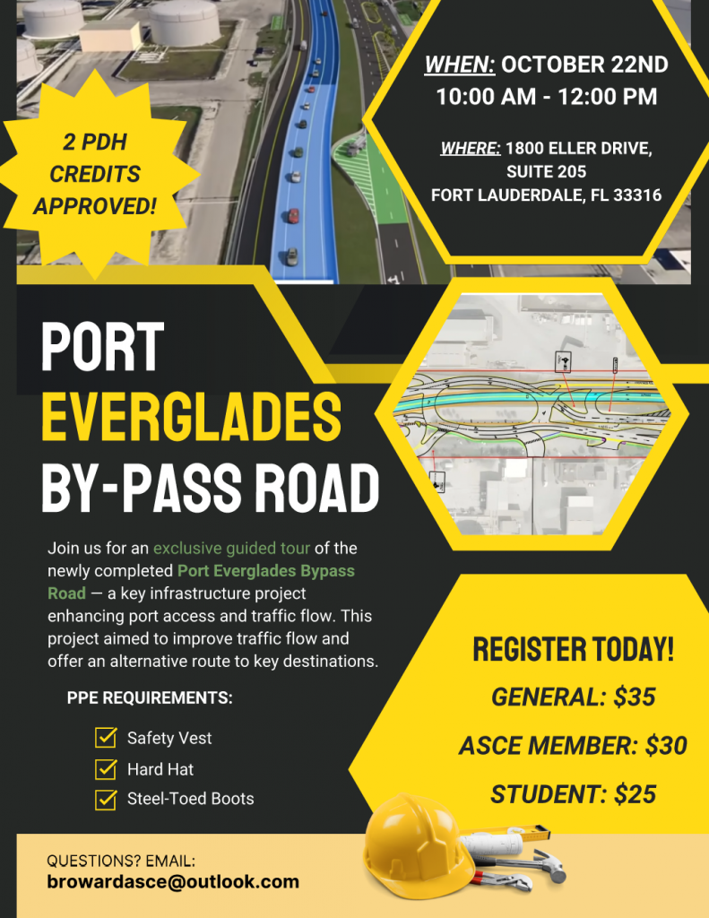 Join us for an exclusive guided tour of the newly completed Port Everglades Bypass Road – a key infrastructure project enhancing port access and traffic flow. This project aimed to improve traffic flow and offer an alternative route to key destinations.